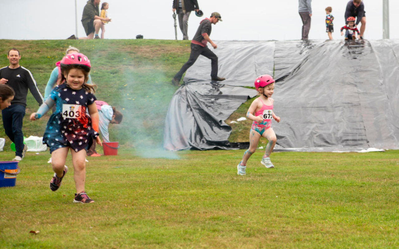 Children (ages 2-8) will take on a mini triathlon with a fun Race, Ride & Slide.– each course is tailored to their suitable age but bring a spare change of clothes!