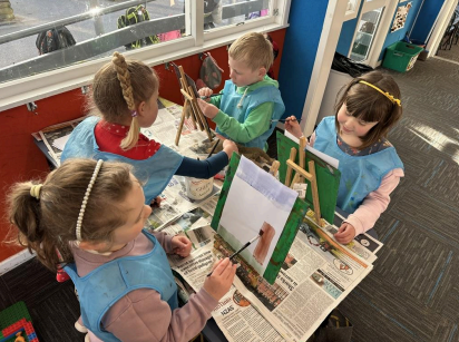 The students completed a range of visual art ideas to display. Each class then performed an item on stage.