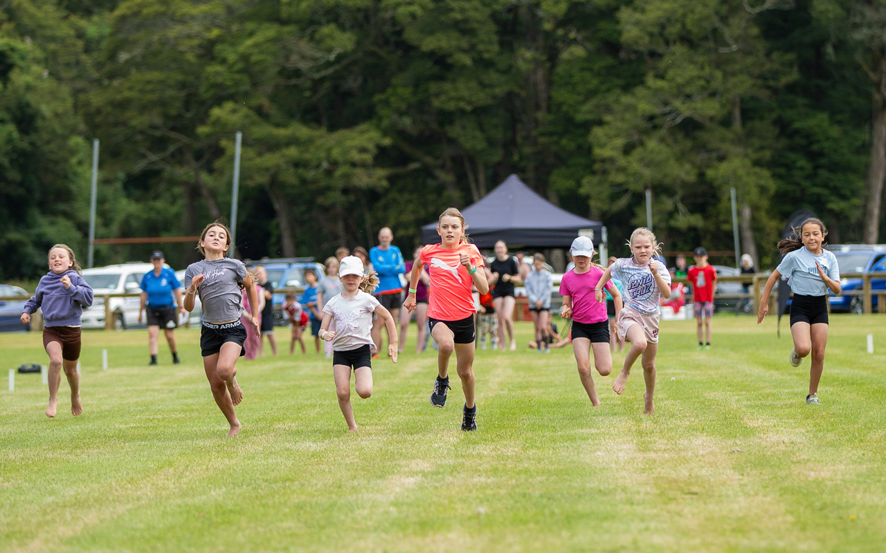 Children compete in running races at the 2026 Tuatapere Sports Day. Photo: Advento Photography