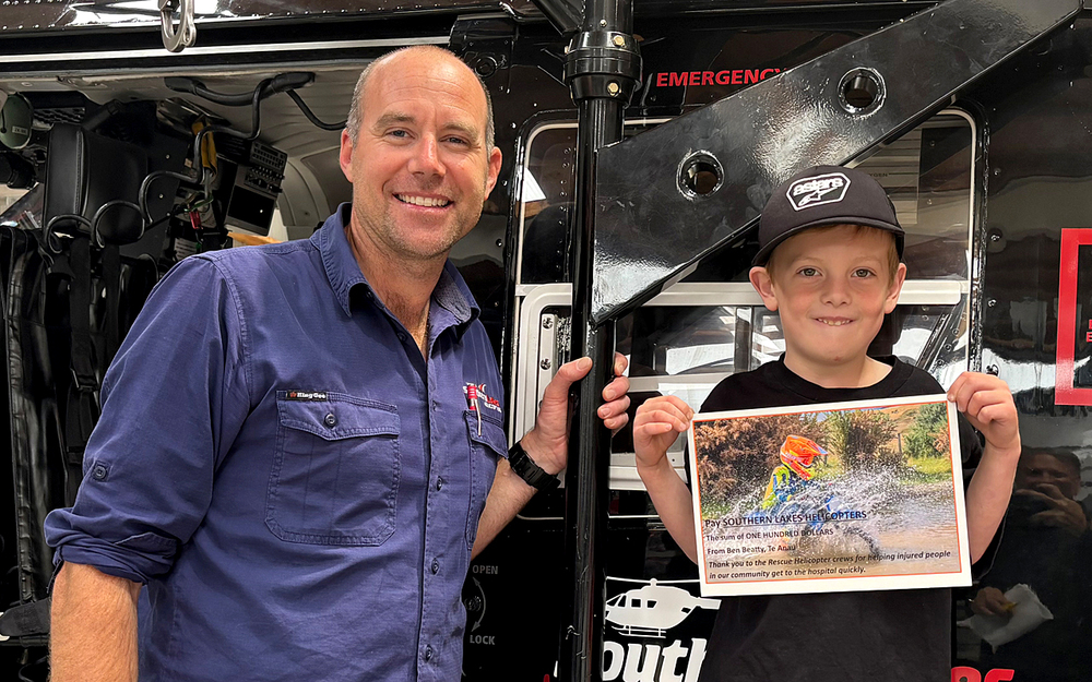 Saving lives in Fiordland likely got just a little bit easier after 7-year-old Ben Beatty - a competitor in the recent Te Anau Basin Trail Ride - decided to donate his prize money to the Southern Lakes Helicopters' rescue helicopter.