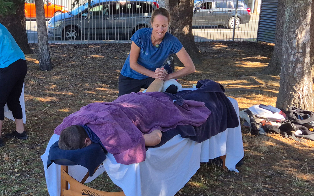 A biker gets a well-earned post ride massage from Fiordland Massage Clinic. Photo: Jamie Dale/Southland App