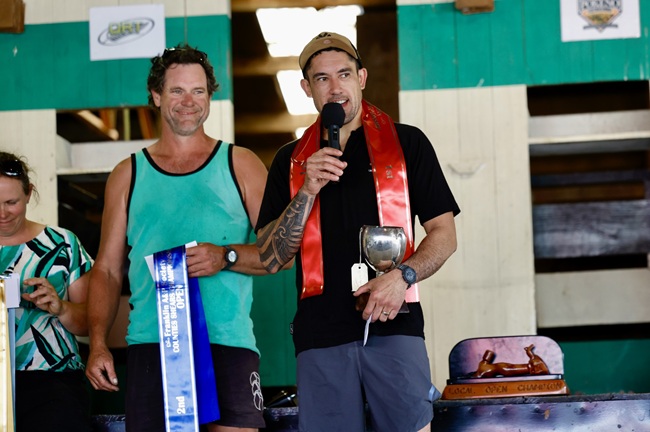 Open final (20 sheep): Toa Henderson (Kaiwaka) 15m 29s, 52.75pts, 1; Jack Fagan (Te Kuiti) 15m 56s, 55.7pts, 2; Llyr Jones (Wales) 15m 38s, 56.8pts, 3; Rowland Smith (Maraekaskaho) 17m 21s, 57.4pts, 4; Digger Balme (Te Kuiti) 17m 12s, 62.8pts, 5.