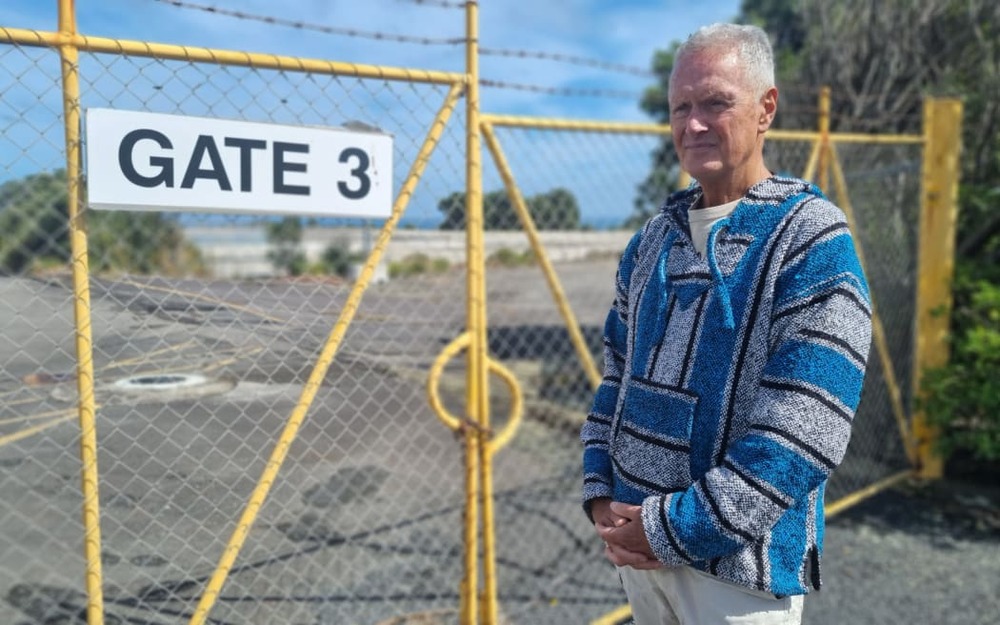 Maurice Bevin at the gates of the now demolished plant. Photo: RNZ / Robin Martin