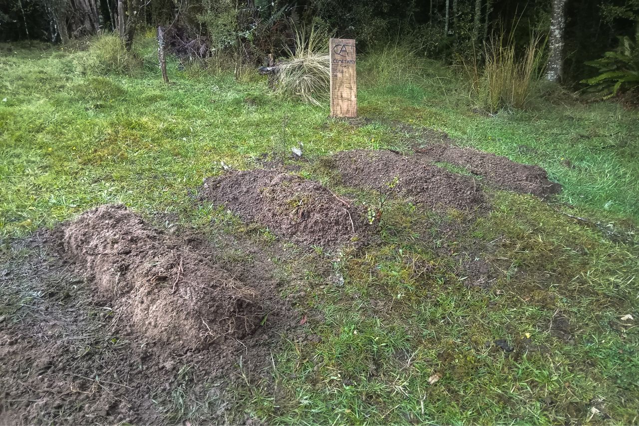 The DOC staffer isn’t happy he buried the cats close to the hut where people might pitch a tent.