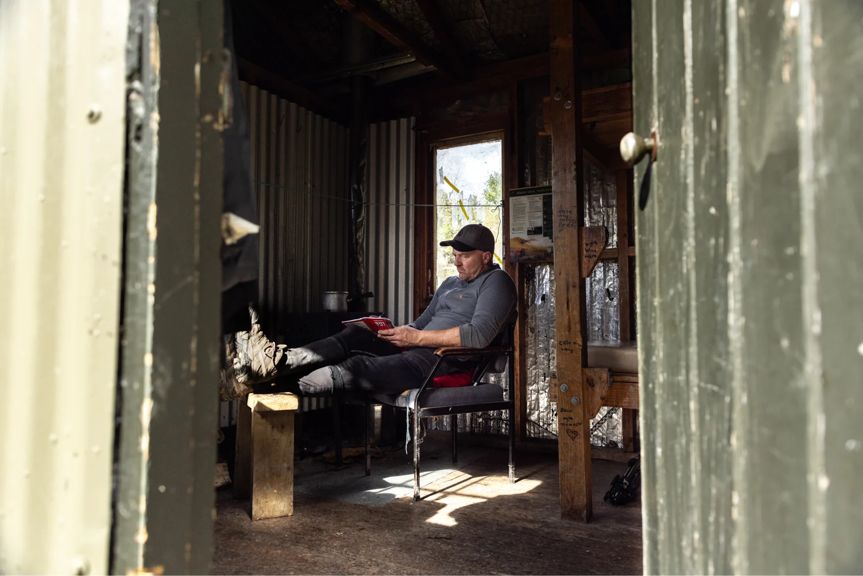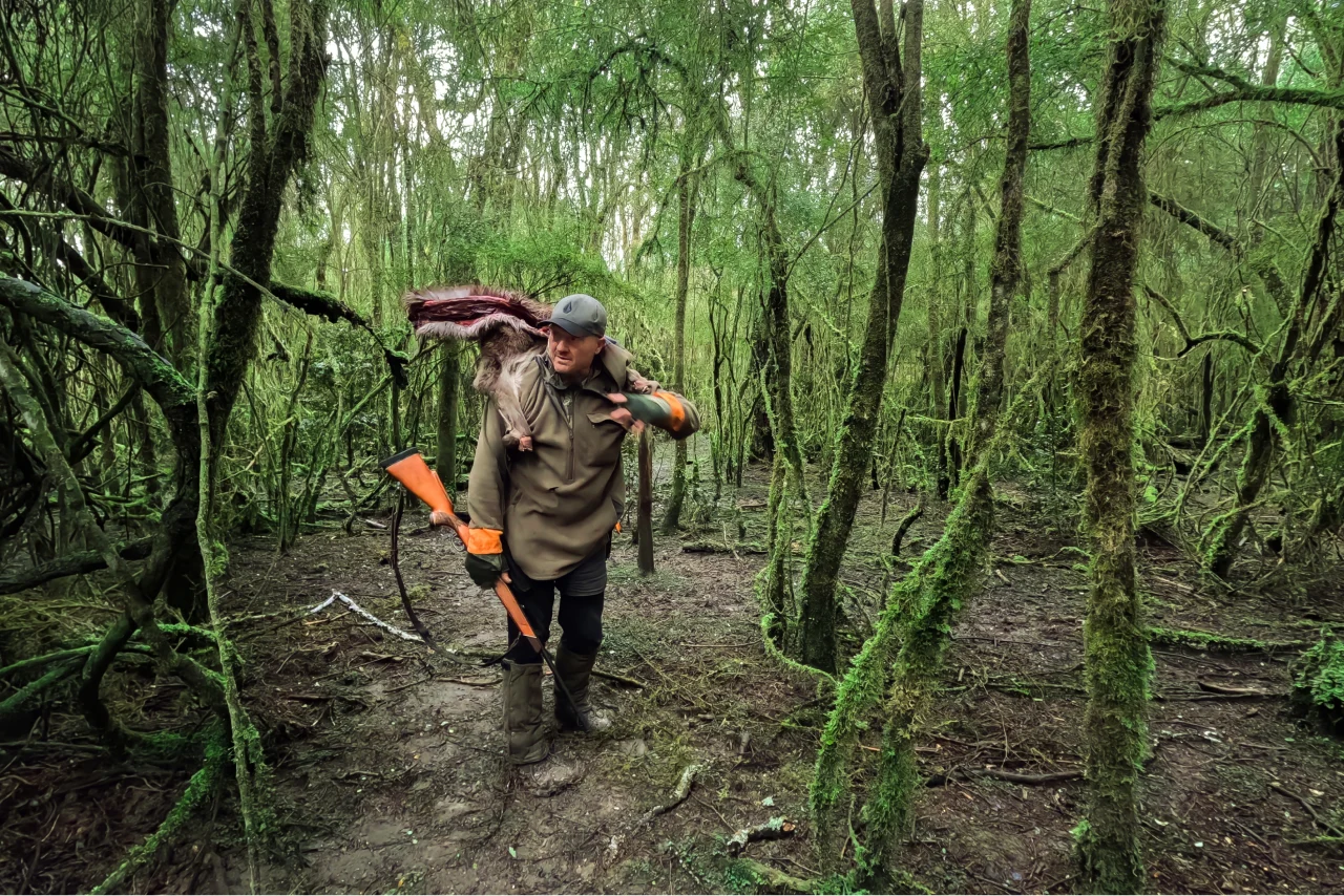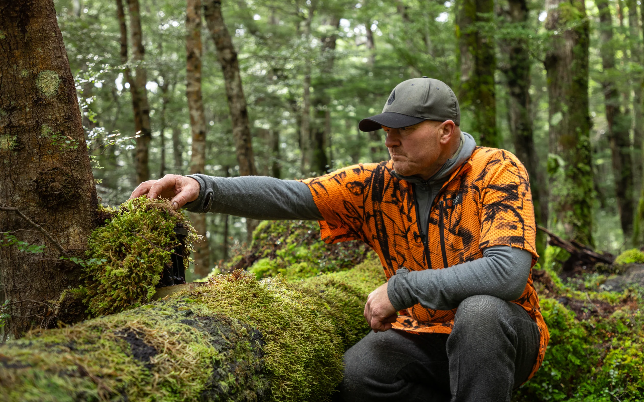 There’s dirt under the nails of the hand grasping the heavy length of mānuka and he’s clad in an orange hunting shirt with layers of well-worn merino underneath.