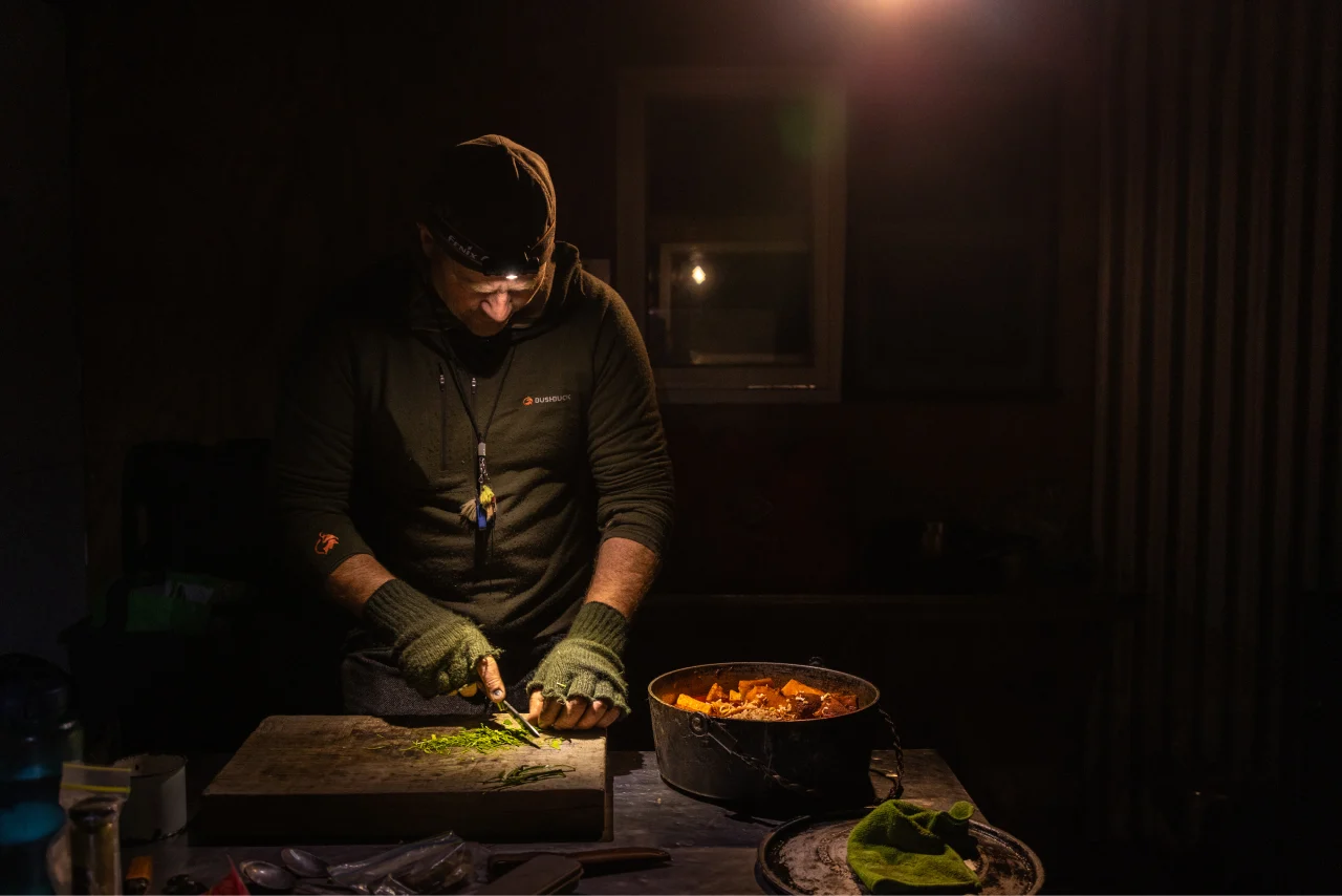 He’s a little bit feral himself, confessing he’s not sure when his last hot shower was, although he’s had plenty of cold water washes in Lake Manapouri under the gaze of snow-capped mountains.