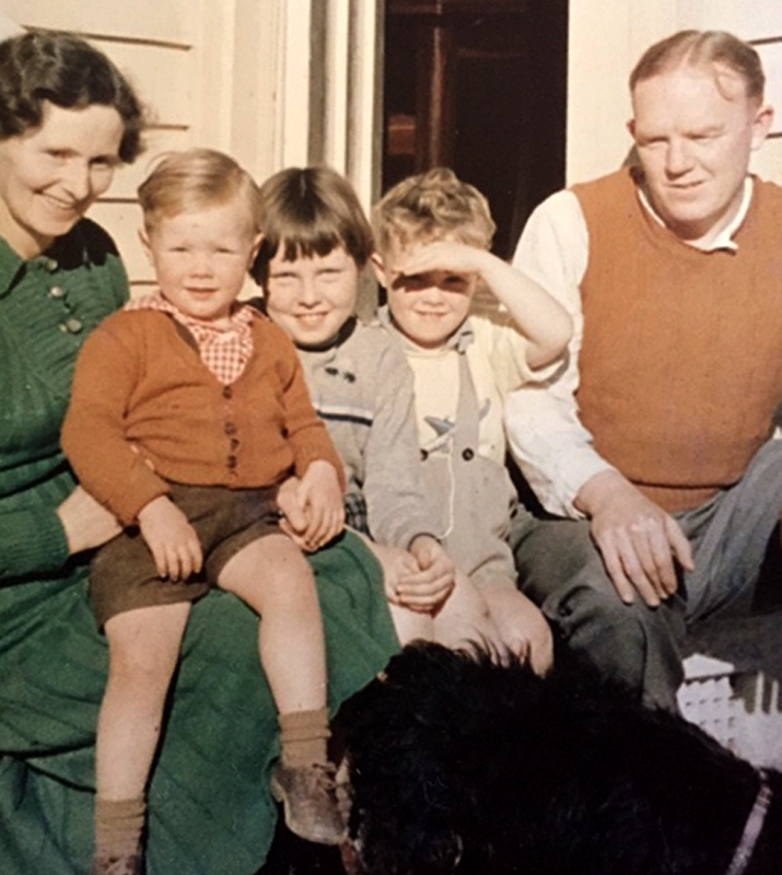 Little Kevin, second right, with Mum Madge, Dad G.J. and two of his four siblings Ian and Susan - mid-1950s. Photo: Supplied