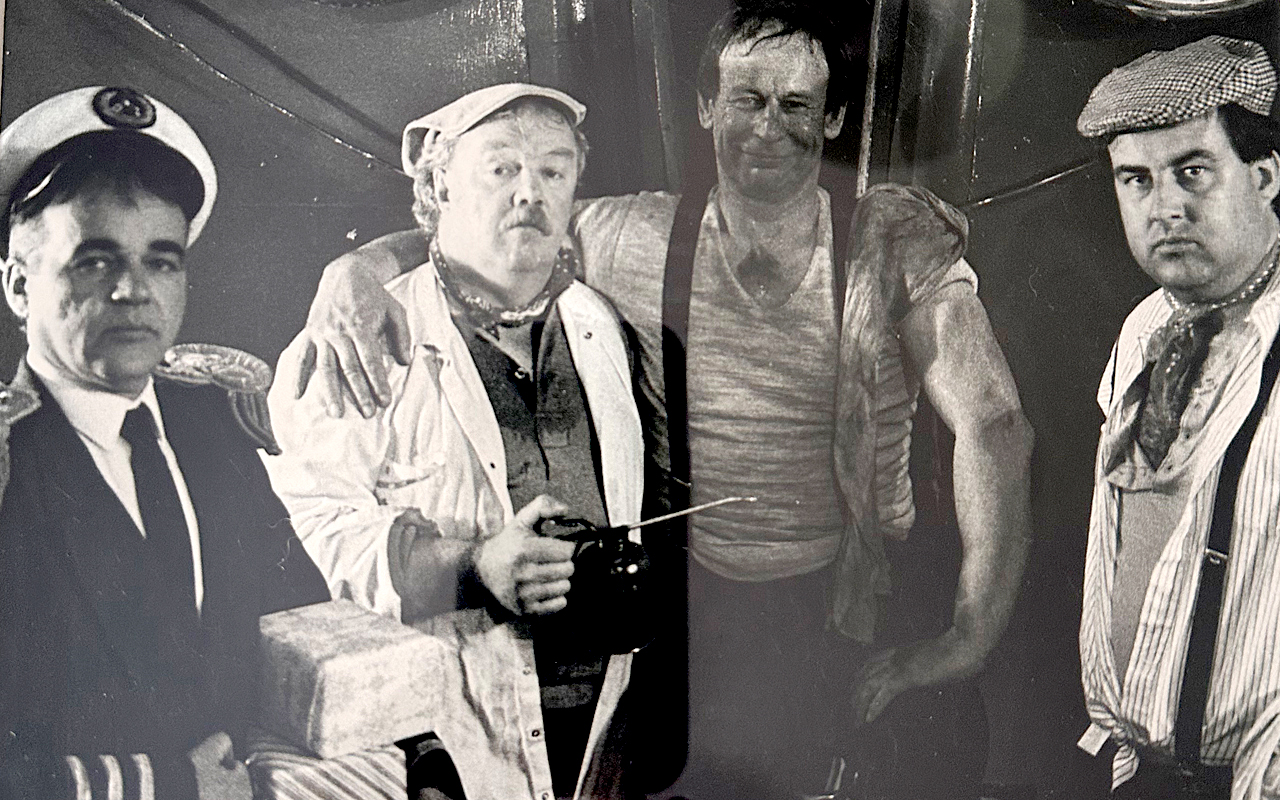 Kevin, second left, with his Queenstown partners, John Troon, left, Alan Macalister and Graeme Todd in one of their much-anticipated annual Christmas skits. Photo: Supplied