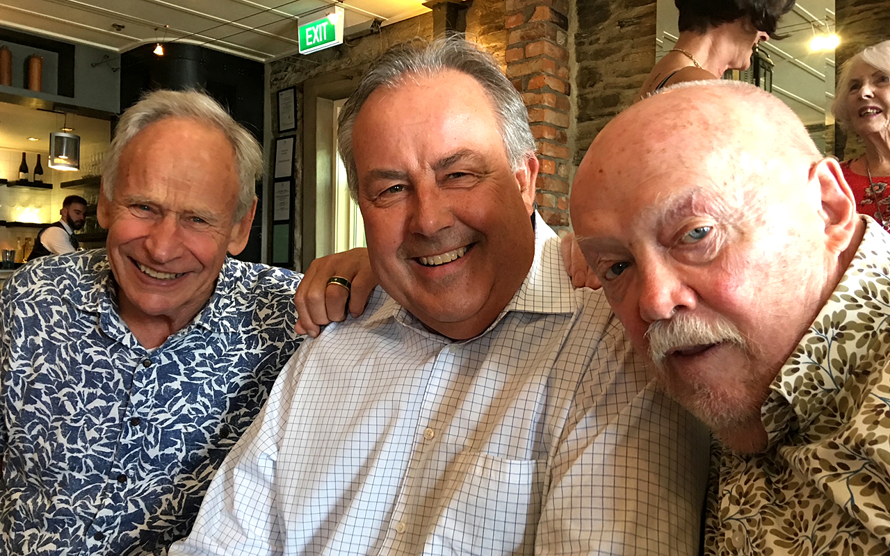 Kevin, right, reminiscing with his old Macalister Todd Phillips partners, Alan Macalister, left, and Graeme Todd. Photo: Supplied