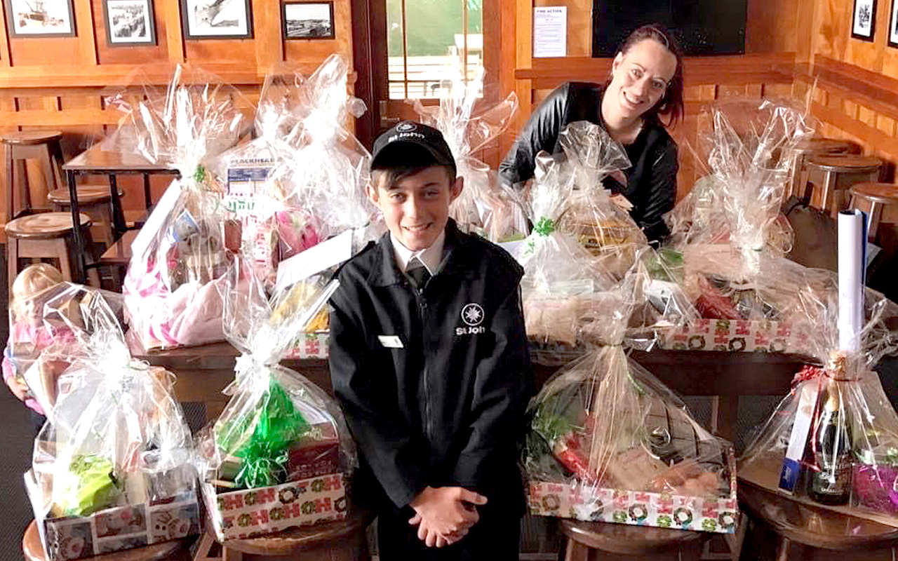 Izaya Simeon and Mum Haylee Simeon at The Eagle Hotel in December 2016, delivering Community Christmas Hampers. Photo: Supplied
