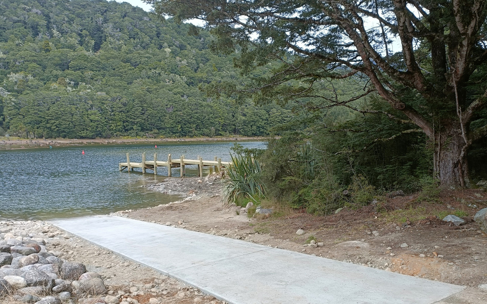 All completed. Lake Monowai's new boat ramp and jetty. Photo: Ben Febery