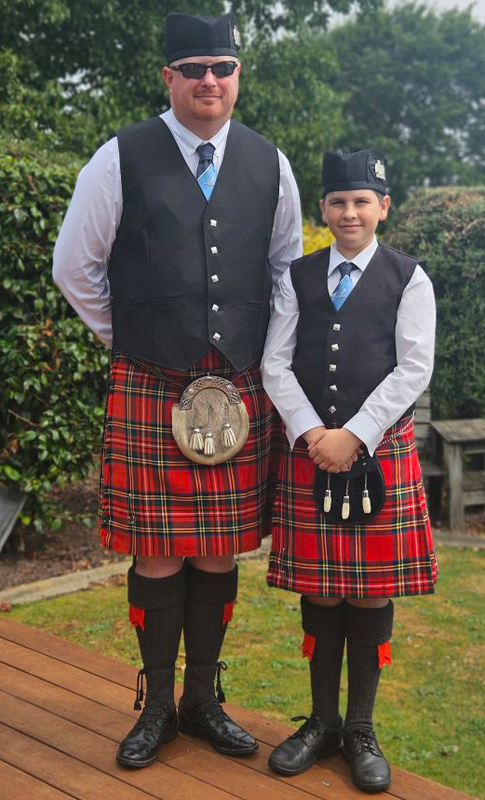 Father and son team Greg and Sam Lindsay - both pipers with the ILT City of Invercargill's grade 4 Pipe Band - will be competing on Friday and Saturday. Photo: Supplied