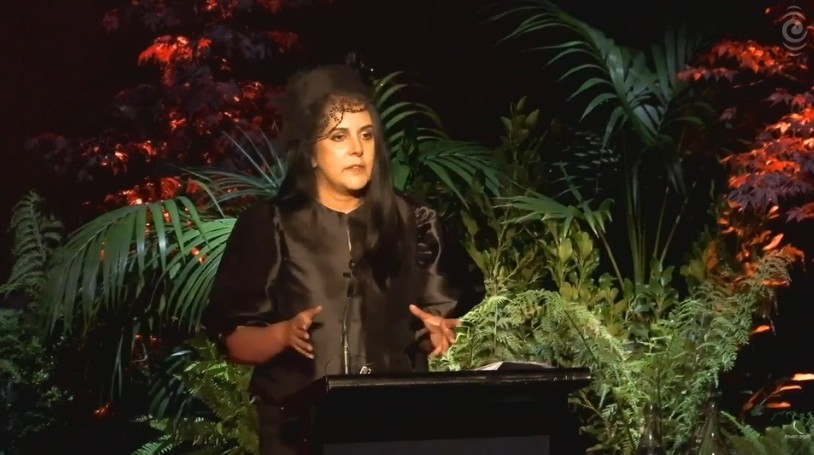 The late Sir Tim Shadbolt's partner Asha Dutt, speaking at his service this afternoon (16 Jan) in Invercargill's Civic Theatre. Photo: ScreengrabInvercargill has bid farewell to the "absolutely extraordinary" late Sir Tim Shadbolt in a service marked by humour and reflection, but a stinging rebuke of his final term in office.
