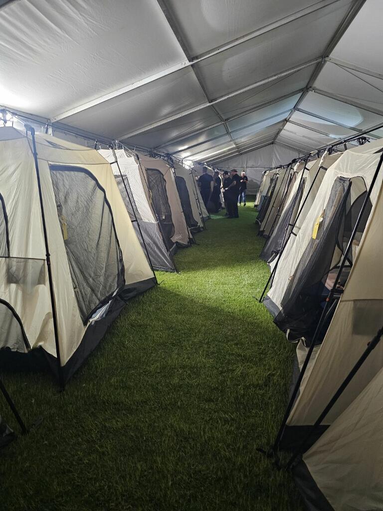 The New Zealand firefighters camped under canvas within a large air-conditioned marquee. Photo: Supplied
