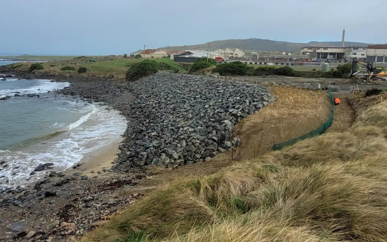Ocean Beach, located about 2km outside of Bluff, has a new rock seawall. Credit: DOC/SuppliedFurther work could be required to protect a Bluff beach from old waste such as asbestos, despite tonnes of material already being removed.