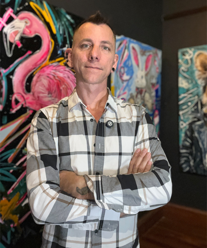 The Space Cowboy's move into visual art, while more recent has been no less dramatic, with his first exhibition held in his own Byron Bay gallery last December (2024) including the artist creating art while using a Tesla coil to pass over one million volts of electricity through his body.