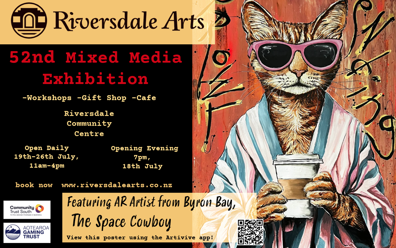 Australian street stuntman and visual artist Chayne ('The Space Cowboy') Hultgren's augmented reality (AR) artwork promises to be a major drawcard at this year's Riversdale Arts 52nd Mixed Media Exhibition, to be held from 18th - 26th July in the Riversdale Community Centre.