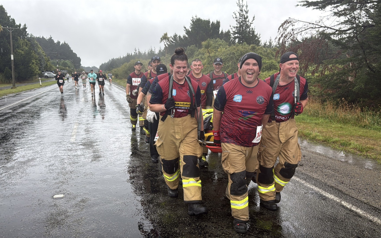 Amongst those who set out to achieve their goals were the team 12 Invercargill firefighters and one St Johns first responder who collectively carried a weighted down stretcher all the way from Oreti Beach to Queens Park for their Southland Community Challenge.