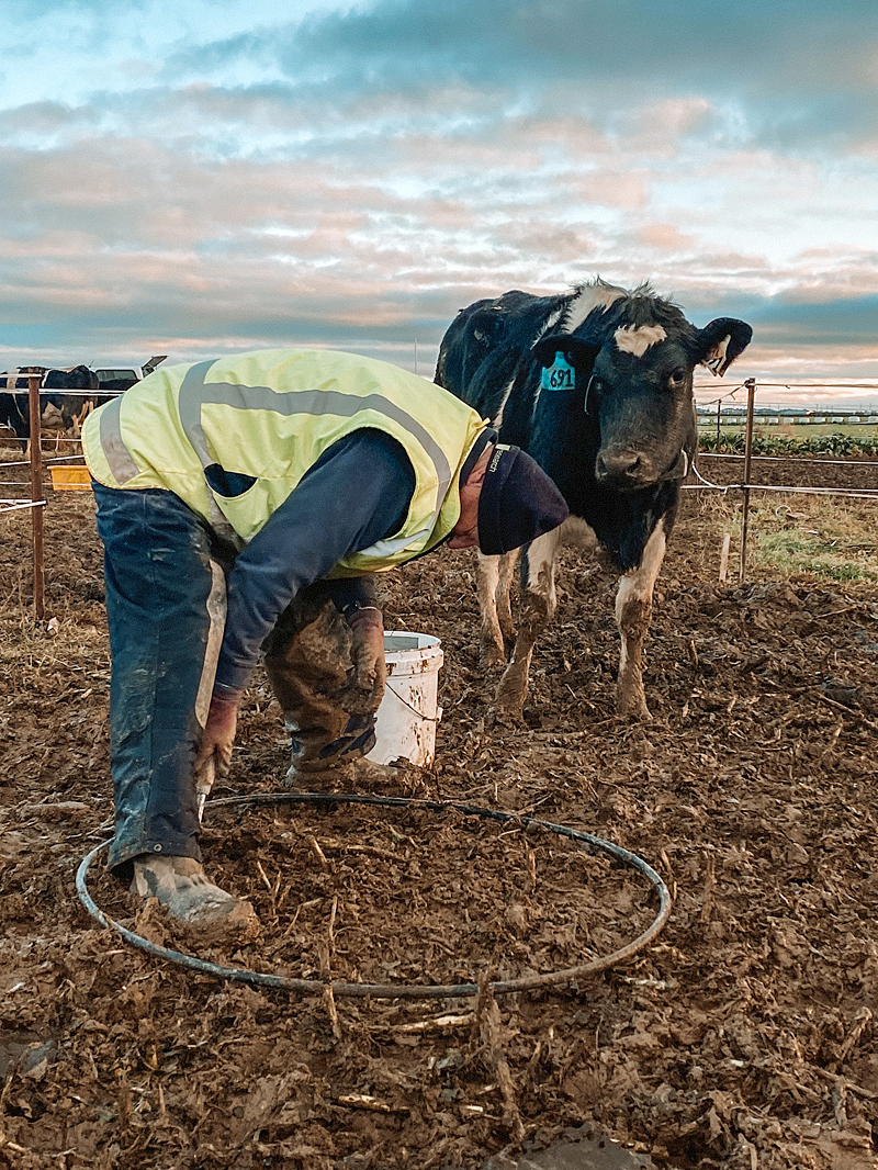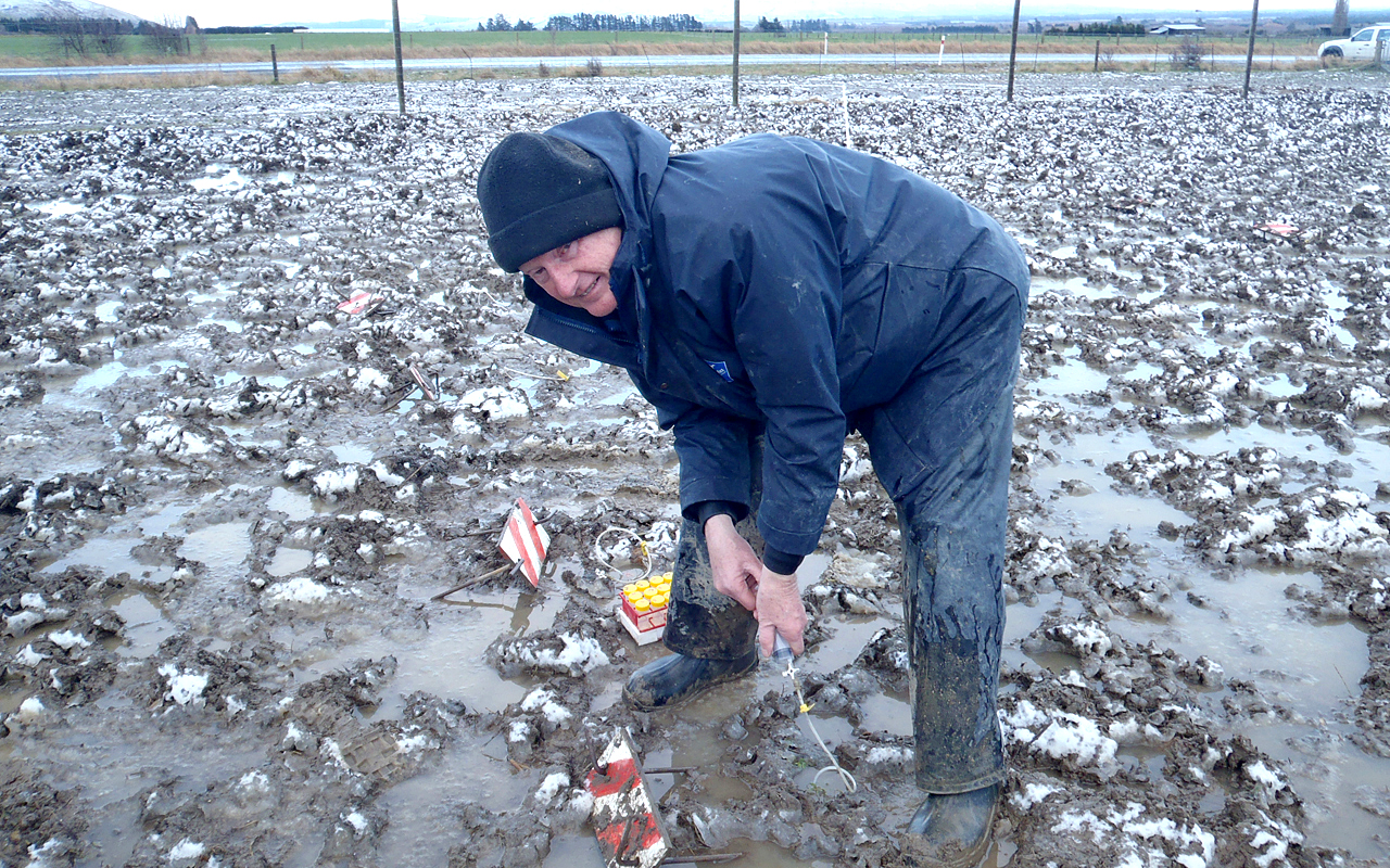 Chris sampling soil leaching samplers - mid winter in 2010. Photo: Supplied