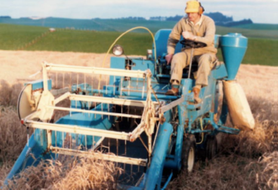Chris working on a harvesting cereal trial in 1986. Photo: Supplied