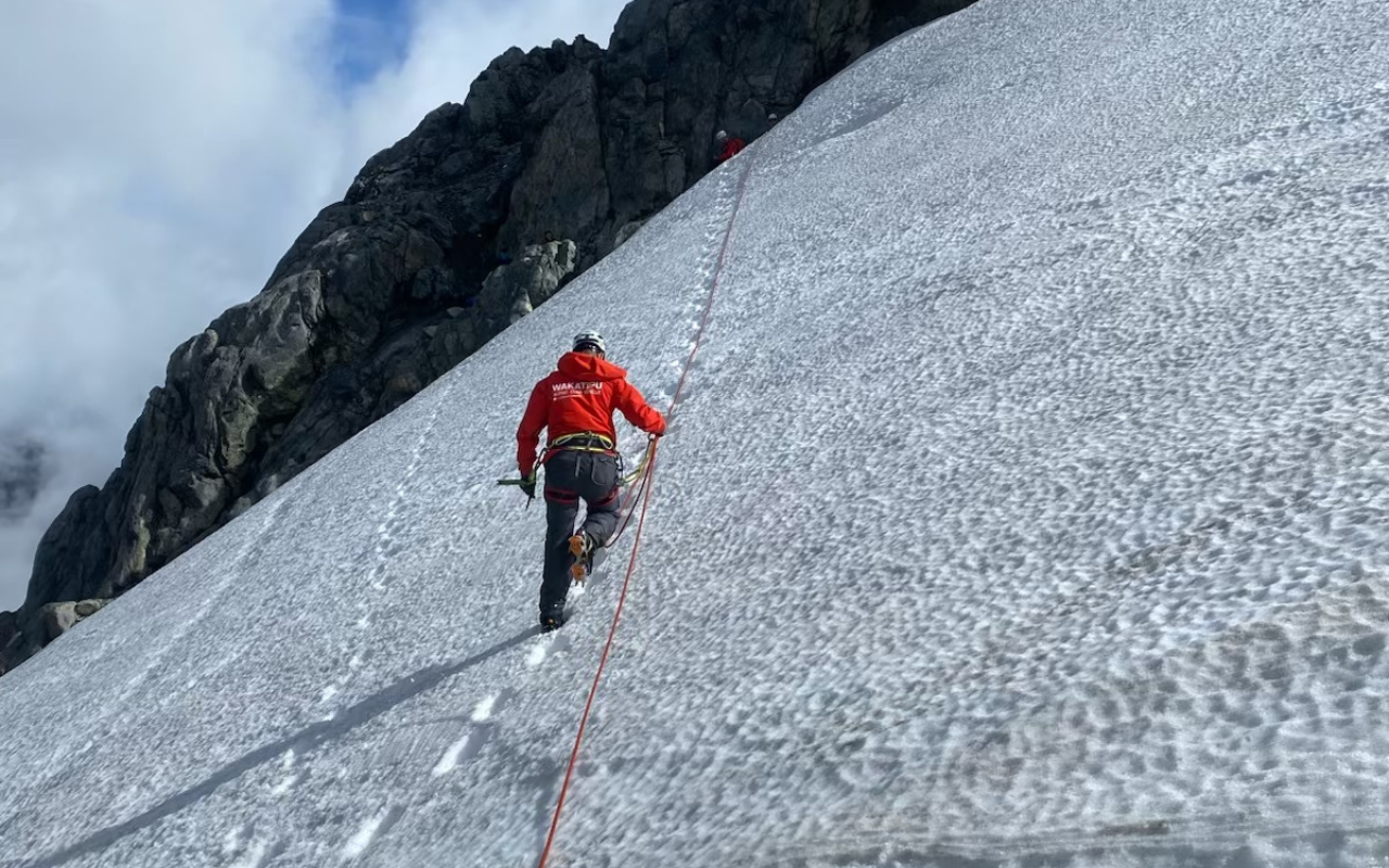 Wakatipu Alpine Cliff Rescue Team coordinator Karl Johnson says they were trapped behind rocky bluffs high at 1796m beyond a large, steep snow slope.
